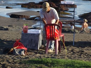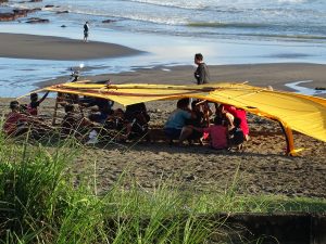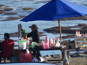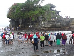 Fahrt mit den Taxi zum Tanah Lot „Land im Meer“. Ausflug mit neuen Eindrücken. Rückfahrt bis Hauptstraße Ganggu- Mittagessen in einem Fischrestaurant. Kokosmilch und feines Essen. Zu Fuß nach Haus gegangen. Ca. 4km.