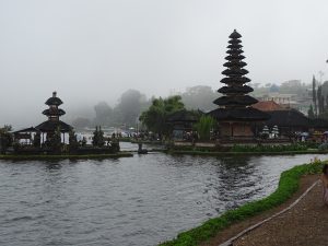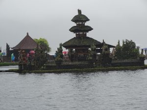 Bergauf 1200 Meter bei Regen zum „Danau Bratan See“. Pura Ulun Danu Tempel im Wasser. Spaziergang im Park. Herrliche Blumen mit Tempelfest. Yogagruppe singt. Taxidriver gesucht! Erster Obsteinkauf, Bananen, Mandarinen, Mangosteen und Durian.
