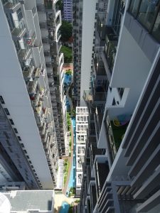 Der Stadtstaat Singapur auf einer Insel mit ca. 5 Mill. Einwohnern gilt als eine der Städte mit dem weltweit höchsten Lebenserhaltungskosten. Für einige Nächte war eine Airbnb Wohnung im 23. Stock unser Zu Hause. Wir teilten uns die Wohnung mit einem netten Pärchen aus Peking. Blick aus dem 23. Stockwerk.
