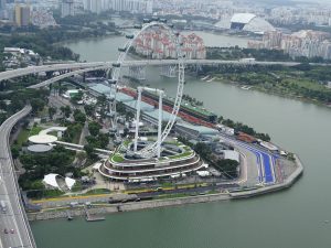 Singapur Flyer: 165 Meter hoch, das zweithöchste Riesenrad der Welt, mit der Formel 1 Rennstrecke.