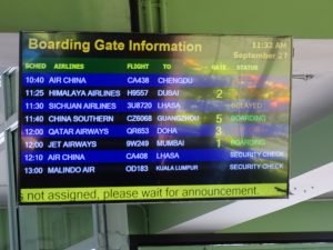 Mit fast dreistündiger Verspätung verlassen wir um 14:10 Kathmandu. Mit der Sichuan Air geht es nun nach Tibet.