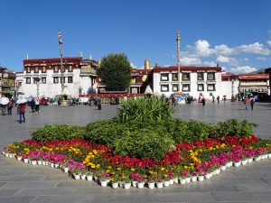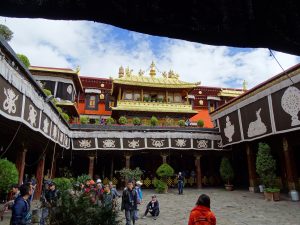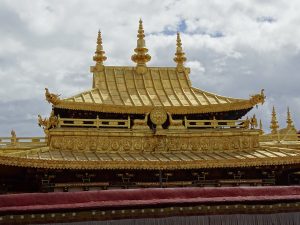Jokhang Tempel, 1300 Jahre alt, mit Gold überdachtest Gebäude im Zentrum des Barkhormarktes in mitten der Altstadt.