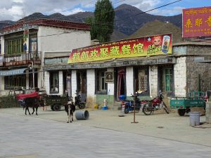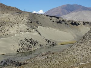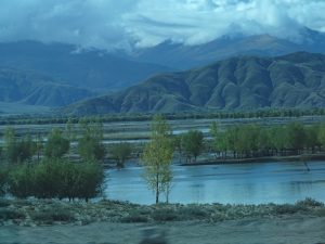 Von Lhasa – Richtung Süden zum Ursprungskloster Dorjee Drag. Es zählt zu den „Sechs großen Sitzen“ der Nyingma. Die Straßen sind gut angelegt und führen uns durch versandete Steinwüsten entlang des Yarlung Flusses.