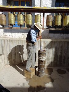 Rundgang um das Monastery, entlang von Gebetsmühlen.
