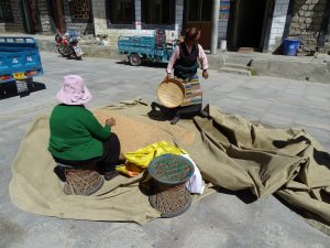 Getreideernte in Gyantse bei ca. 3600 Meter.