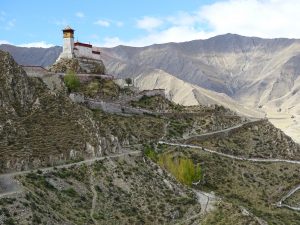 Wir überqueren den ersten Höhenpass mit 3950 Meter und erreichen Yumbu Langgang. Diese antike Festung gilt als die älteste Tibets.