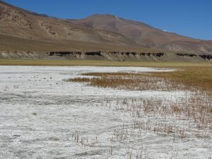 Im Rückblick, immer noch schneebedeckte Berge. Sand, Salz und Schnee!