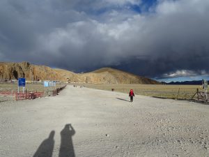 Über eine Piste, 80 Kilometer !! unbefestigte Strasse fahren wir mit unserem Allrad nach Shigatse. Vorbei an ausgetrocknete Salzseen und meterhohe Sanddünen.