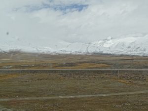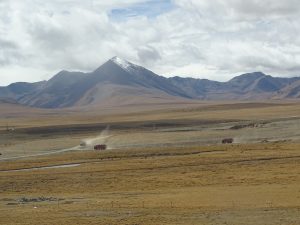 Wanderdünen und Yak Herden sind Probleme in dieser einzigartigen Hochebene Tibets. Absperrungen werden aus Steine und Zäune verlegt. Die Strecke wird militärisch bewacht.