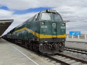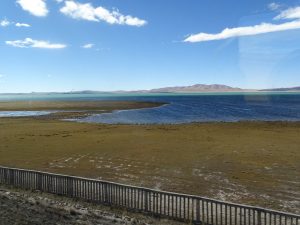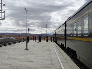 Die Streckenlänge der Lhasa-Bahn beträgt 1956 Kilometer und deren Höchstgeschwindigkeit beträgt 160 km/h. Sie ist die höchstgelegene Bahnstrecke der Erde. Der Guanjiao-Tunnel ist 32,6 Kilometer der längste Rummel in China. Wir verbrachten 34 Stunden im Schlafwagen gemeinsam mit vier weiteren Mitreisenden. De höchstgelegener Bahnhof Tanggula haben wir wohltuend verschlafen.