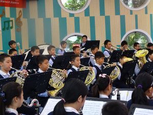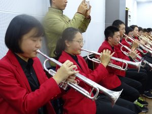 Xi’an Gaoxin Greenwich School, ebenfalls ein tolles Schulblasorchester in voller Besetzung. Eine Freude, so ein Ensemble leiten zu dürfen. Der sehr freundliche und humorvolle Direktor leitet diese Schule mit innovativen Ideen. Programm: Waltz No.2, Dance, Farandole.
