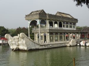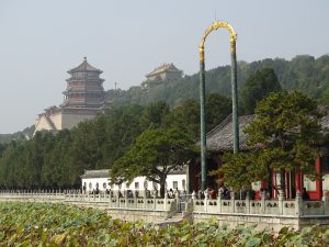 Mit der Subway geht es zum neuen Sommerpalast. Im historischen Park fahren wir mit einem kleinen Boot bei Sonnenschein bis zum Marmorschiff. Mehr als 170 Stufen steigen wir hinauf bis zum Pavillon des „Buddhistischen Wohlgeruch“.