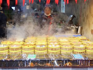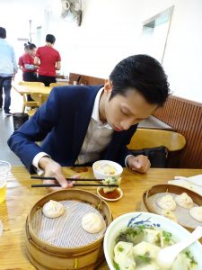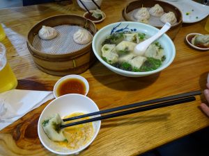 Köstliche Dumplings zur Stärkung. Unser Begleiter Jonny hilft uns bei der Menüauswahl in einem Local Restaurant.