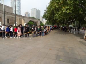 Sonntag, ist der Eintritt in das Shanghai Museum für uns mit einer 45 minütigen Wartezeit verbunden. Egal, es ist ein muss. Auf 4 Etagen gibt es 11 Gallerien und 3 Ausstellungshallen. Bronze- und Skulpturenausstellung, Malerei und Kalligraphie, Jade-und Keramiksammlung.