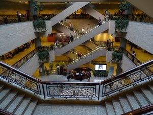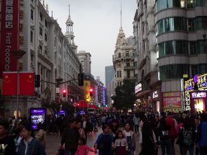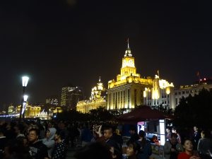 Über die Road Nr. 19, drängen wir uns durch die Menschenmenge zum BUND. Es ist Sonntag, trotzdem haben alle Geschäfte geöffnet.