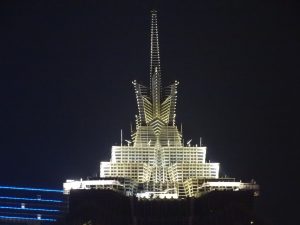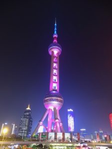 Der Oriental Pearl Tower steht in Pudong und ist 468 Meter hoch, der dritthöchste Fernsehturm Asiens. Die Aussichtsplattform befindet sich auf 263 m.