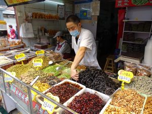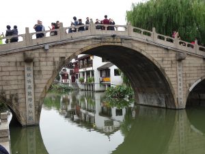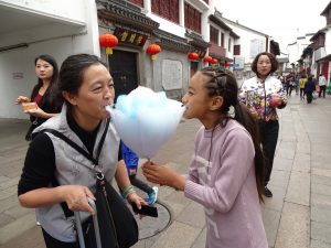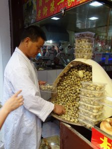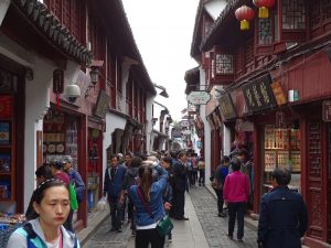 Ein Chauffeur mit weißen Handschuhen und einem tollen Van brachte uns mit dem Mädchen (Namen leider vergessen) von der Casting Show zur Qi Bao Old Street. Die Wasserstadt inmitten Shanghais besteht Großteils aus alter Bausubstanz, diese Architektur hat ihrem Charm. Die unzähligen Geschäften in den engen Gassen bieten so ziemlich alles, was ein Touristenherz bzw – Magen vertragen kann.