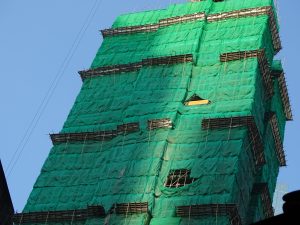 Atemberaubender Gerüstbau aus Bambus in schwindeliger Höhe. Die Stämme werden mittels eines eigenen Knoten mit Hand verbunden. Leicht und kostengünstiger als Eisen. Es werden damit sogar Hochhäuser gebaut. Wahnsinnig toll!