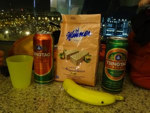 Mit Mannerschnitten – einem besonderen Geschenk von Barbara – lassen wir den Abend im Hotelzimmer in der 30. Etage ausklingen.