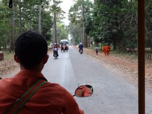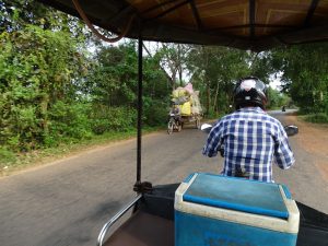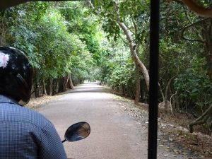 Mit dem Tuktuk zum Neak Pean, einer quadratisch angelegter Insel. Wir genießen den kühlen Fahrtwind durch den Dschungel.