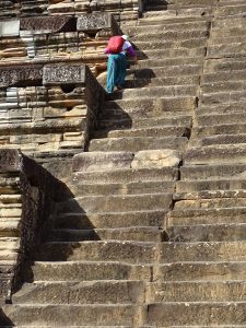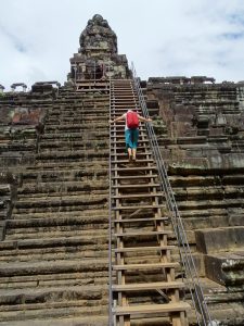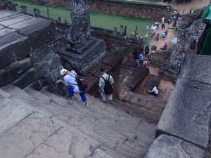 Der Ta Keo Tempel , ist „der älteste“, aber unvollendet. Der Aufstieg ist recht beschwerlich. Eine Stufe hat ca 40. cm und die Sonne berennt vom Himmel. Der Ausblick ist grandios. Natürlich fordert auch der Abstieg einiges an Konzentration.