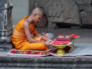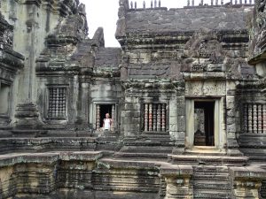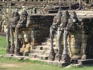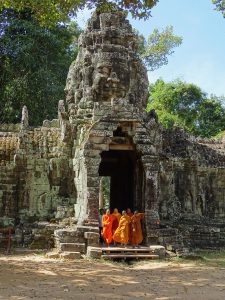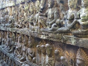 Die Tempel von Angkor sind schwer zu beschreiben. Worte wie: unglaublich schön, interessant, faszinierend, atemberaubend, majestätisch …….. sagen zu wenig darüber aus was wir empfunden haben. Ja, wir waren des öfteren sprachlos. Begegnungen jeglicher Art. Vorbei an einem kleinen Kloster, entlang der Elefantenterrasse bis zur Terrasse des Leprakönigs. Auf dem mehr als 300 Quadratkilometer großen Areal von Angkor, liegen zahlreiche Ruinenstätten verstreut.