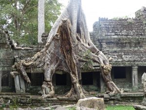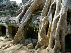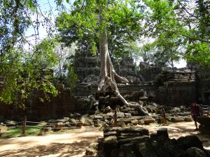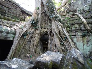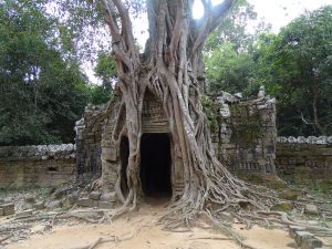 Auch hier wuchern die Bäume über die alten Gemäuer. Es scheint, als würde der Baum den Tempel verschlingen.