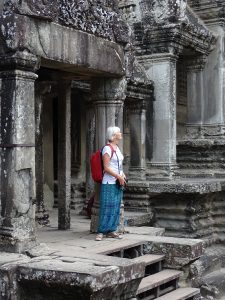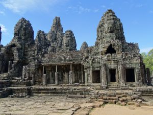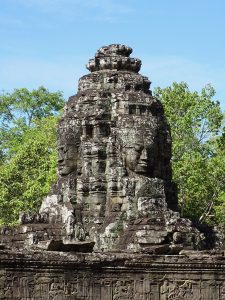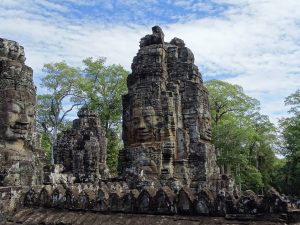 Die Tuktukfahrt mit wohltuender Abkühlung durch den Fahrtwind war eine willkommene Abwechslung. Zu Fuß erreichen wir den Bayon. Seine 54 Türme mit den bis zu 4m hohen Gesichtern ist unglaublich schön. Dieser Tempel wurde über viele Jahre immer wieder erweitert.