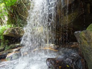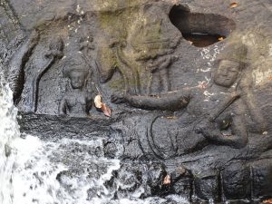 Ein Abstieg zum Wasserfall und immer wieder Reliefs im Wasser. Seit den späten 1990 jähre , nach Räumung der Landminen aus dem Kambodschanischen Bürgerkrieg ist Kbal Spean wieder gefahrlos zugängig.