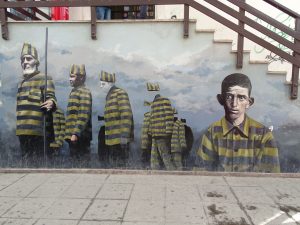 Diese Wandmalerei erinnert an das berühmt berüchtigte Gefängnis Presidio. Ein warmes und ruhiges Plätzchen fanden wir in der Kirche Don Bosco.