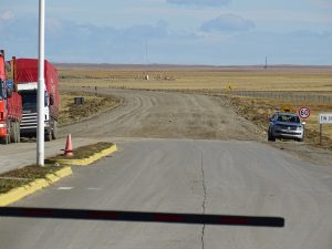 An der Grenze zu Chile ist die Asphaltstrasse zu Ende. Mit der Fähre geht es später über den sehr stürmischen Magellankanal.