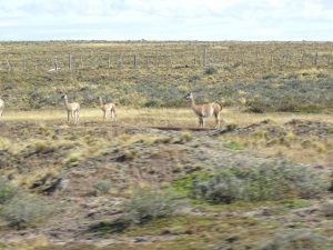 Mit dem Bus nach Punta Arenas/Chile. Während der Fahrt durch die Pampa sehen wir viele Guanakus.