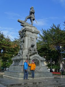 Am Plaza de Armas halten wir uns am großen Zehen des Indianers fest. Der Sage nach kehrt man nach Punta Arenas zurück wenn man ihn anfasst.