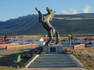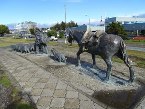 Monoument El Ovejero – zeigt die engl. Einwanderer mit ihren Schafen. Sie haben der Stadt mit ihrer Wolle den Aufschwung gebracht.