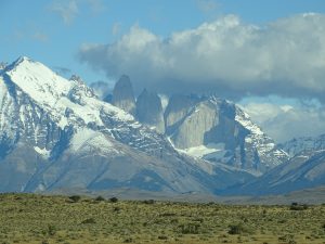 Der erst Blick auf die „Torres del Paine“, ist etwas wolkenverhangen.