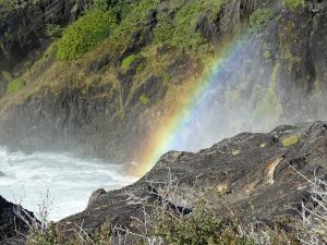 Bei Windgeschwindigkeiten bis zu 160 km/h !! war der Weg zum Wasserfall „Gran Salto“ sehr beschwerlich. Zur Belohnung sahen wir einen Regenbogen.