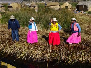 Die Urus waren ursprünglich Landbewohner, doch als die Inkas sie zur Arbeit in den Silberminen zwingen wollten sind sie auf das Wasser geflüchtet. Erst lebten auf Booten die sie aus Schilf herstellten. Später begannen sei aus Totora-Schilf Inseln zu bauen und so leben sie auch heute noch auf ihren Inseln die alle 2 Wochen erneuert werden müssen.