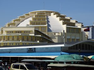 Buntes Markttreiben auf den Eisenbahnschienen und auf den Straßen.