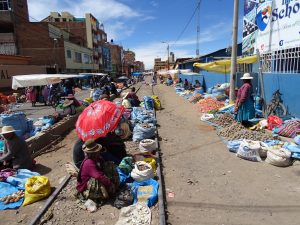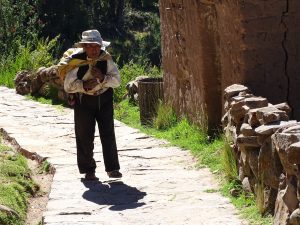 Die größte Insel im Titicacasee auf peruanischer Seite ist „Taquile“. Anstieg zum Zentrum des Dorfes das auf 3950 Meter liegt. Die Tequilenos leben in einer organisierten Genossenschaft, die sich bewußt auf die Gebote „nicht stehlen, nicht lügen, nicht faul sein“ bezieht. Als Folge verzichten die Bewohner auf eine Polizei.