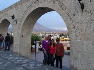 In Arequipa gibt es ein freudiges Wiedersehen mit Julia und Wil. Wir haben uns auf einer Bootstour in Ho Long Bay/Vietnam im November 2017 kennengelernt. Sie zeigen uns stolz die „weiße Stadt“ Arequipa. Die umliegenden Vulkane, auch die Hüter der Stadt genannt sind: Mistri 5.822 Meter, Chachani 6.057 Meter und Picchu Picchu mit 5.665 Meter.