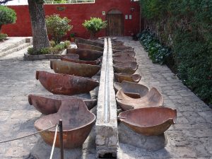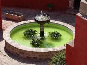 Hier wurde die Wäsche gewaschen. Brunnen im sonnigen und ruhigen Innenhof.