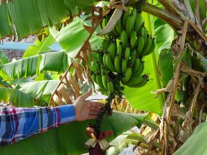 Mit Wil fahren wir um 5:00 Uhr Morgens auf seine Farm nach La Joya. Da gibt einen Menge zu sehen. Orangenbäume, Bananenstauden.