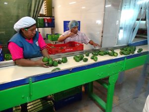 Avocados werden gewaschen, sortiert und für den Verkauf verpackt.