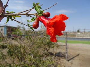 Granatapfelbäume werden sorgfältig gepflegt. Blüte vom Granatapfel.