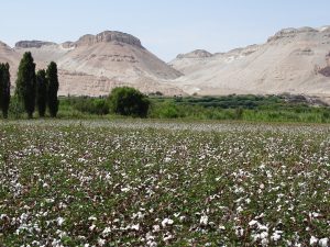 Baumwollfelder am Rande der Wüste.