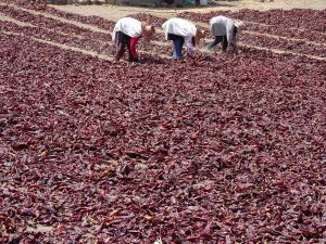 Das Trocknen der Paprikaschoten. Dankbar blickt Wil auf den Fluß der das Leben und die Landwirtschaft am Rand der Atacama ermöglicht.