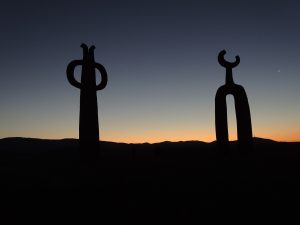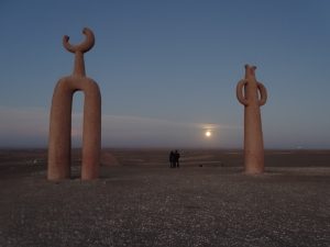 Bei Vollmond und Sonnenuntergang bestaunen wir die magischen Wüstenskulpuren – Presencias Titulares vom chilenischen Künstler Juan Diaz Fleming.